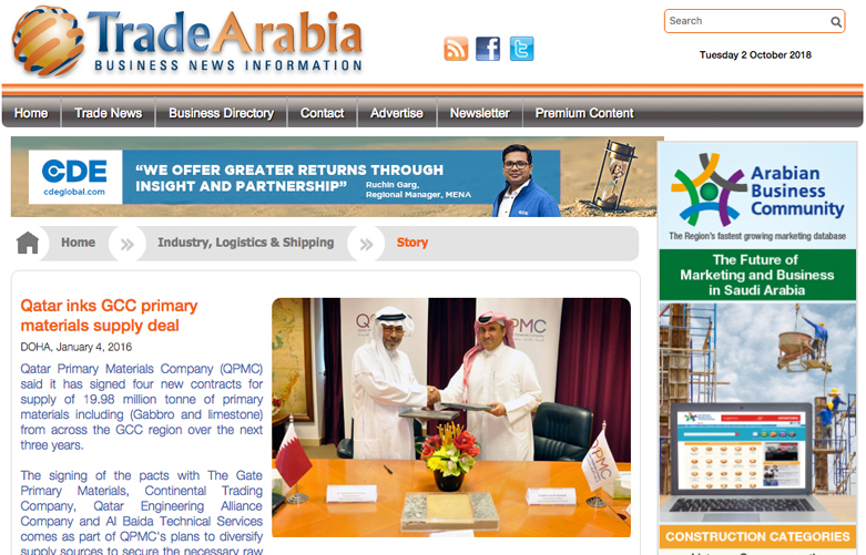 The actual implementation of the contract will start in the coming months, reported the state news agency QNA. QPMC said as per the deal, private Qatari companies Continental Trading, Al Baida and Qatar Engineering Alliance will procure primary materials from Oman, while Al Bawaba Primary Materials Company will get the contracted quantity from the UAE.